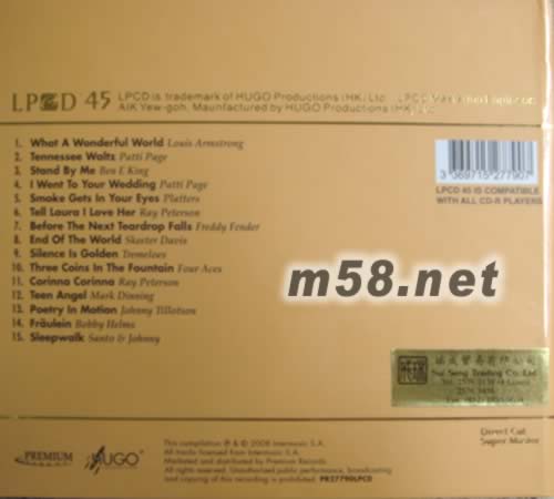 01. What A Wonderful World -Louis Armstrong 02. Tennessee Waltz -Patti Page 03. Stand By Me -Ben E King 04. I Went To Your Wedding -Patti Page 05. Smoke Gets In Your Eyes -Platters 06. Tell Laura I Love Her -Ray Peterson 07. Before The Next Teardrop Falls -Freddy Fender 08. End Of The World -Skeeter Davis 09. Silence Is Golden -Tremeloes 10. Three Coins In The Fountain -Four Aces 11. Corinna Corinna -Ray Peterson 12. Teen Angel -Mark Dinning 13. Poety In Motion -Johnny Tillotson 14. Fraulein -Bobby Helms 15. Sleepwalk -Santo & Johnny