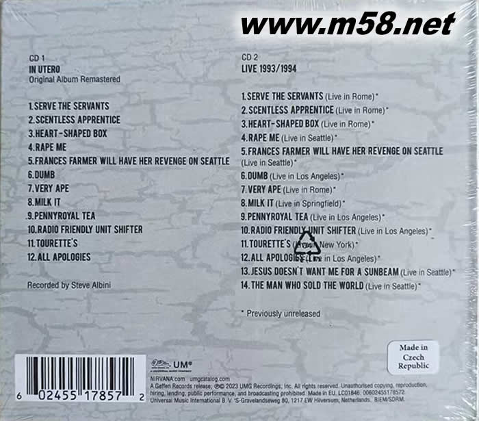 IN UTERO 雙CD DELUXE EDITION專輯背面圖片