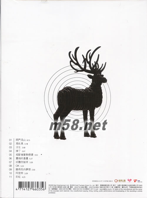 01. 開門見山 02. 黑吃黑 03. 分生 04. 掉了 05. 相愛后動物傷感 06. 靈魂的重量 07. 好膽你就來 08. OK 09. 聽得見的夢想 10. 阿密特 11. 彩虹