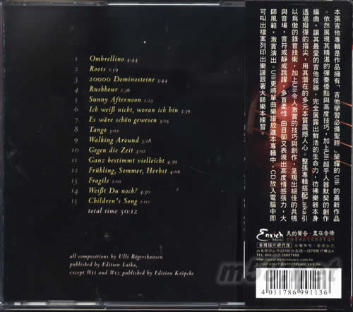 吉它生命(m58.net) 本張吉他專輯是作品擁有「吉他學(xué)習(xí)必備圣經(jīng)」榮耀的Ulli 的最新作品。依然展現(xiàn)其精湛的彈奏優(yōu)點(diǎn)與高度技巧,加上Ulli超乎人器默契的創(chuàng)作編曲,讓其最愛的吉他弦器,完全展露出鮮活的生命力,彷彿樂器本身透過撥彈的指尖,用其潛在的多元本質(zhì)震撼人心。整張專輯搭配Laika引以為傲的錄音技術(shù),加上Ulli令人激賞的技巧與創(chuàng)作,呈現(xiàn)出絕佳的共鳴與音場,音符或靜或跳躍,多首柔性 曲目卻又表現(xiàn)出高度情感張力,大師風(fēng)范,激賞演出。Ulli更將單曲樂譜放進(jìn)本專輯中,CD放入電腦中即可叫出檔案列印出樂譜跟著大師樂本練習(xí)。