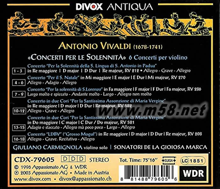 Concerti Per Le Solennita 韋瓦第六首小提琴協(xié)奏曲專(zhuān)輯背面圖片