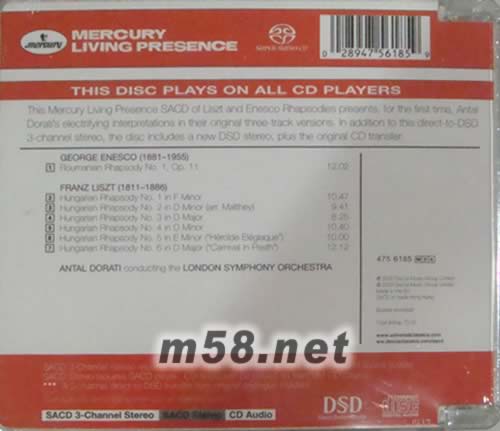 埃奈斯庫和李斯特匈牙利狂想曲1-6 SACD專輯背面圖片