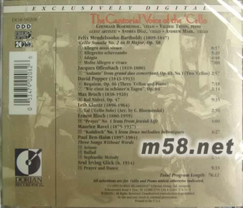 猶太大提琴THE CANTORIAL VOICE OF THE CELLO(m58.net) 曾被指定為測試系統(tǒng)重播大提琴質(zhì)量的一張試音碟,DORIAN以完美的手法,打造出完美無瑕的效果。大提琴散發(fā)豐厚綿密的音質(zhì),琴音的所有細(xì)節(jié)巨細(xì)靡遣。 特洛伊儲蓄銀行寬闊的音場與極佳的定位,琴音的流更是活生感干足,如果您少了這張CD那真是人生一大遺憾!曾被指定為測試系統(tǒng)重播大提琴質(zhì)量的一張試音碟,DORIAN以完美的手法,打造出完美無瑕的效果。大提琴散發(fā)豐厚綿密的音質(zhì),琴音的所有細(xì)節(jié)巨細(xì)靡遣。 特洛伊儲蓄銀行寬闊的音場與極佳的定位,琴音的流更是活生感干足,如果您少了這張CD那真是人生一大遺憾!