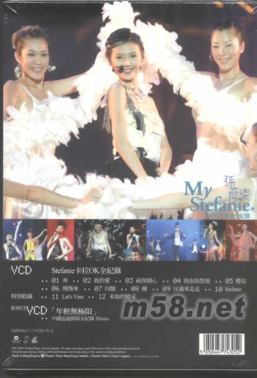 價格為估,以實到貨為準! MY STEFANIE 2004影音全紀錄 VCD(m58.net) 收錄:12首從未曝光卡拉OK MV 包括[奔、[我的愛] 年輕無極限中國巡回演唱會全記錄BONUS VCD 休息近一年的孫燕姿終于2004年夏天期間,首次在中國內地四大城市包括廣州、北京、成都及長都,展開共四場「年輕無極限2004」中國巡迴演唱會,為小休復出先進行熱身,令內地的樂迷雀躍萬分。及後,在10月推出《Stefanie》專輯即創下全亞洲首批出貨量高達150萬張,成績有目共睹!