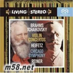 布拉姆斯、柴可夫斯基:小提琴協奏曲 Brahms & Tchaikovsky: Violin Concertos Hybrid Multichannel SACD特惠(m58.net) *兩張Living StereoLP合為一張CD 萊納(指揮)芝加哥交響樂團 海飛茲 (小提琴) 雅沙?海菲茲(Jascha Heifetz):1901年2月2日出生在立陶宛的維爾紐斯。 海菲茲的演奏把作品內涵的表達放在首位,演奏總是圍繞著這個中心的,每一個發音都充分、飽滿、優美。他最精彩的,還是浪漫派的大型獨奏作品。 在海菲茲的一生里,好像從來沒有出現過失敗的演奏,小的失誤也是極少見到的。這一方面是因為海菲茲極為嚴格的自我要求,另一方面就是他高超的技術水平。