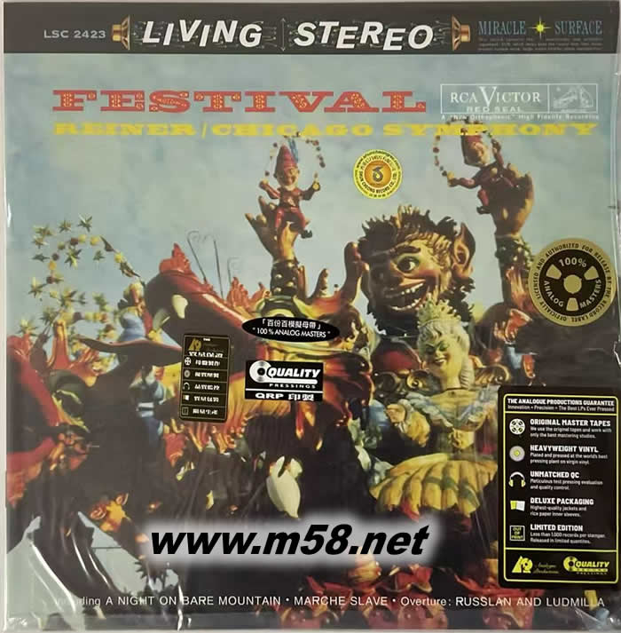 價格為估,以實到貨為準! Festival + Pines of Rome / Fountains of Rome節日序曲 TAS發燒名盤 黑膠(m58.net) TAS上榜天碟,萊納指揮芝加哥交響樂團,俄羅斯的古典音樂向來都是優秀之代表,集優美和熱鬧氣氛於一身,本專輯更是一張經典之作,挑選著名作曲家,包括卡巴列夫斯基、柴可夫斯基、鮑羅丁、穆索爾斯基及格林卡的作品,無論在錄音、演繹及樂團表演精準上,均達至完美,The Golden Era of RCA Records,顧名思義即是RCA唱片寶典,曾經評選本專輯為10++,被公認為立體聲類比錄音黃金時代的經典傳奇!二合一版本,包括Pines of Rome / Fountains of Rome專輯,兩張作品單碟推出。 新一輯萊納上世紀60年代指揮芝加哥交響樂團的名錄音再版登場內容相當吸引:卡巴列夫斯基《科拉斯、布勒尼翁》布局精巧,氣氛緊湊,管弦樂火花四溢。柴可夫斯基《斯拉夫進行曲》和《D大調組曲》前者音樂推展緊湊生動,緊張刺激,凝聚高潮來臨時天崩地裂,那排山倒海的架勢,萊納唯我獨專。 後者靈感旺盛,即興性自發演奏音效生動異常。鮑羅定《伊戈王子》管弦樂表現異國色彩表情豐富,傳神錄音呈現指揮與樂手將激情融入音響之中綻放出凌厲的動態,織染出華麗音響痛快淋漓。演繹雷史碧基《羅馬之松》、《羅馬泉》更是萊納的代表作,前者以敏銳的感覺由淺入深,由小見大用敘事性的方式走入音樂壯嚴豪邁的意境。後者用管弦樂描畫夕陽西下時羅馬噴泉的景色意象布局縝密,細膩生動,詩意浪漫,音色醉人。 這是Blue Moon Records又一「大包」製作,把萊納指揮芝加哥交響樂團的RCA Living Stereo兩大名盤《節日》和《羅馬之松 / 羅馬之泉》集於一身,一曲不漏。 《節日》中的多首作品,除了柴可夫斯基小進行曲較為靜態之外,其他作品「柴可夫斯基:斯拉夫進行曲」、「Borodon:Polovski進行曲」、「穆索斯基:荒山之夜」、「葛令卡:Russlan & Ludmilla序曲」,還有甚少錄音的「Kabalevsky:Colas Breugnon序曲」,皆屬光輝燦爛,節奏飛快,動態強大,旋律動聽的醒神炫技佳作。 原來錄音已捕捉到萊納指揮棒下樂團的光輝、火爆、快勁、強勢,絕對的操控力;而這Blue Moon製作更給我一份能人所不能的超級空間感,闊大高深得使我這個對Living Stereo Reiner錄音不陌生的發燒友嘩然!當中音像凝聚,線條刻劃明確,分隔度極佳,弱音餘響無比悠長,空氣感充沛得爆燈,尤其是高頻。在「大房」以分析力極高的Accustic Arts Player II作音源,以Sasha WP揚聲器鑑聽,這CD的鏗鏘火辣敲擊,剛勁璀璨銅管,光照萬里高頻,以至凌厲的弦樂群,都有驚人的重現,威力之大,足以激發起一圈又一圈的光環,和一團又一團的空氣! 我之前聆聽過由Blue Moon製作,萊納指揮芝加哥交響的德布西和拉威爾作品,覺得聲音生猛開揚而帶甜潤。但這《節日》卻給了我不同感覺,便嘗試找來其他版本比較一下。找不到《節日》,卻找到了Analogue Productions再版的《羅馬之松 / 羅馬之泉》金CD。 萊納的《羅》是在Living Stereo中動態最強的錄音之一。Blue Moon版高頻及通透度更優越,有極級空間擴展能力,使得大房的11.5呎高樓頂和18呎闊後牆都填滿了空氣,樂器更玲瓏浮突。Analogue Productions版則有較暖潤音色,鼓皮較厚韌,低頻較沉重,全頻重心放得稍低;是兩種不同的靚聲表現。
