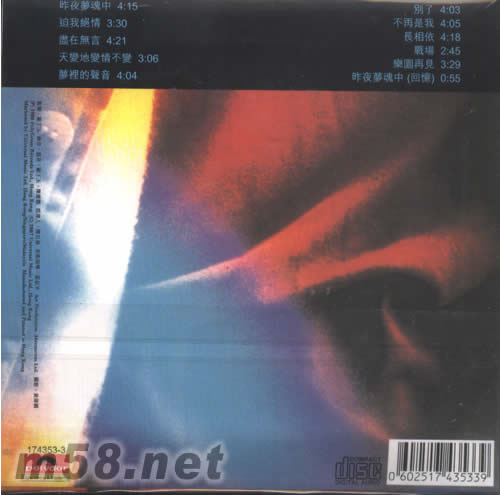 01 昨夜夢魂中 02 迫我絕情 03 盡在無言 04 天變地變情不變 05 夢里的聲音 06 別了 07 不再是我 08 長相依 09 戰場 10 樂園再見 11 昨夜夢魂中(回憶)