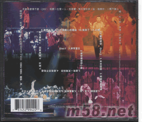 Disc1: 51:52 1.非常夏日 5:29 2.等你等到我心痛 6:20 3.總有一天等到你 4:00 4.只有你不知道 4:51 5.望月 4:51 6.餓狼傳說 5:14 7.野貓之戀 4:42 8.離開以后 4:03 9.一千個傷心的理由 4:34 10.我哭了 3:34 11.幻想 4:42 12.讓你愉快 4:41 Disc2: 49:01 1.來來回回 2.當愛變成習慣 3.屈到病 4.高!高! 5.春風秋雨 6.我等到花兒也謝了 7.這個冬天不太冷 8."友"情歌 1985-1993 SMILE AGIN 瑪麗亞\月半彎/藍雨/太陽星晨/天變地變情不變/CRY/只想一生愛一人/李香蘭/每天愛你多一些/暗戀你/一顆不變心/愛火花/只想一生跟你走