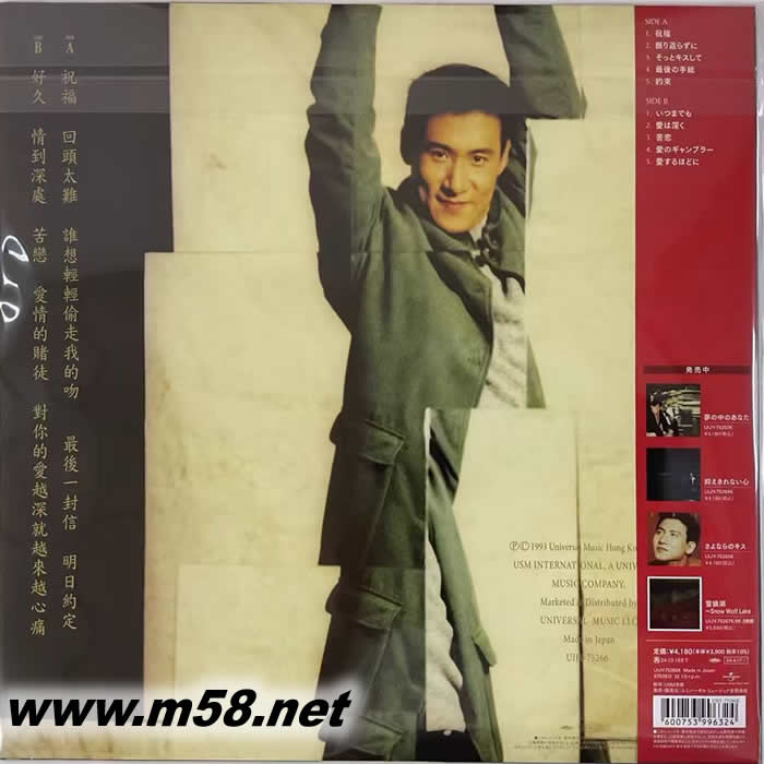 SIDE A 1.祝福 2.回頭太難 3.誰想輕輕偷走我的吻 4.最后一封信 5.明日約定 [OT: 天變地變情不變] SIDE B 1.好久 2.情到深處[OT: 旅姿六人眾] 3.苦戀 4.愛情的賭徒 5.對你的愛越深就越來越心痛