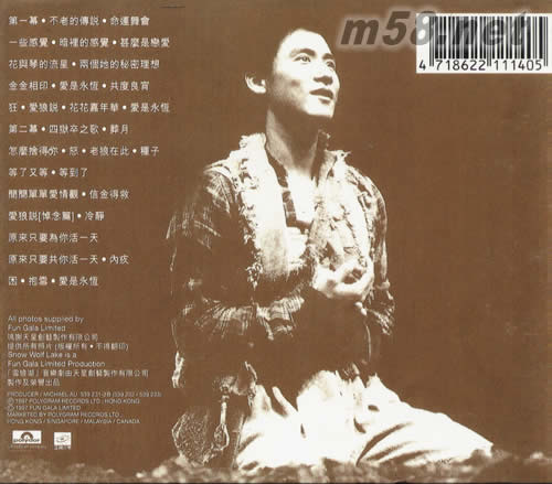 雪狼湖(臺版)(m58.net) 請點看產品正、背面大圖 雪狼湖音樂劇已經在香港等地區公演多次了,學友始終擔作主唱。此劇已經深入人心。此次的女主唱換成了湯汕,并將在大陸巡回演出。