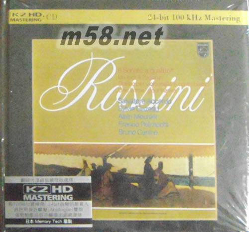 ROSSINI 6 SONATA A QUATTRO 羅西尼K2HD 雙碟裝(m58.net) 劃時代頂級發燒母版處理 K2HD Mastering 將100KHz寬頻帶/24bit音頻信息載入 音色更接近模擬(Analogue)聲效 羅西尼 弦樂奏鳴曲 極品典藏