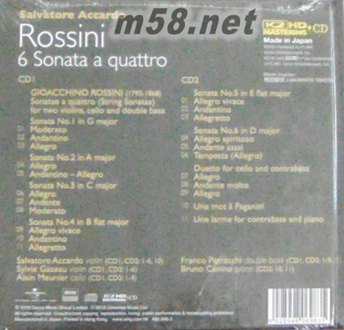 ROSSINI 6 SONATA A QUATTRO 羅西尼K2HD 雙碟裝專輯背面圖片