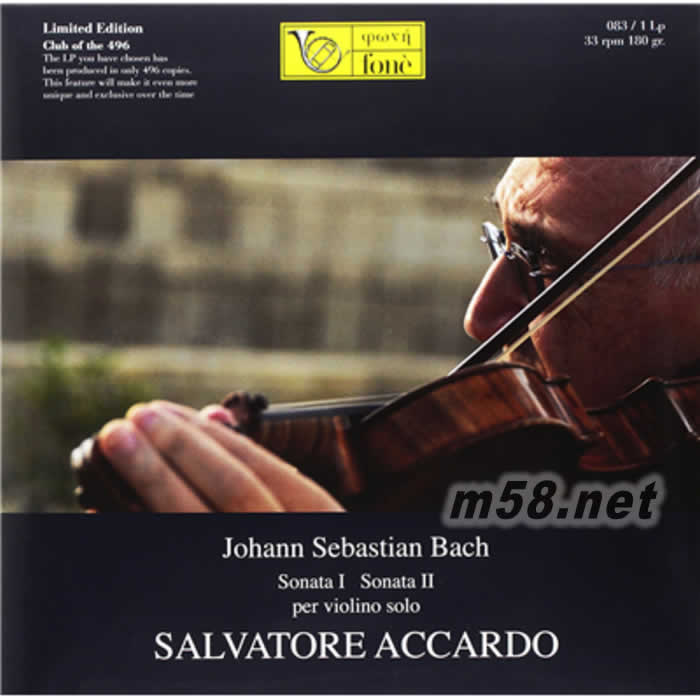 巴赫 第1 & 2小提琴奏鳴曲Bach: Sonat I BWV 1001 & Sonata II BWV 1003 Per Violino Solo] 180g 33RPM LP 黑膠 限量版(m58.net) 1. 意大利小提琴一代宗師阿卡多(Salvatore Accardo)採用絕世名琴由斯特拉迪瓦里(Antonio Stradivari)於1727年製造之「弗蘭切里卡蒂(‘Hart’ ex Francescatti)」演奏出巴哈(J.S.Bach)的[為小提琴獨奏而作的第一奏鳴曲BWV1001(Sonata I for Solo Violin BWV1001)及第二奏鳴曲BWV 1003(Sonata II for Solo Violin BWV1003)]。