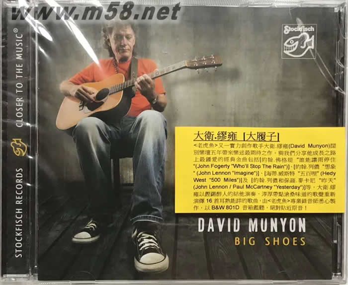 BIG shoes 大鞋子/大履子(m58.net) <老虎魚>又一實力創作歌手大衛,繆雍(David munyon)闊別樂壇五年帶來樂迷最期待之作,與我們分享他成長路上最鐘愛的經典金曲包括[約翰,佛格堤"誰能讓雨停住"(john fogerty "who'll stop the rain")],[約翰,列農:想象"(john lennon imagine")],[約翰,列農和保羅,麥卡尼"昨天"(ohn lennon/paul mccartney"yesterday")]等大衛,繆雍以鏗鏘醉人的吉他演奏"淳厚帶點蒼桑味道的歌聲重新演繹16首耳熟能詳的歌曲,由<老虎魚>專業錄音師精心制作,以B&W 80音箱監聽,絕對貼近原音!