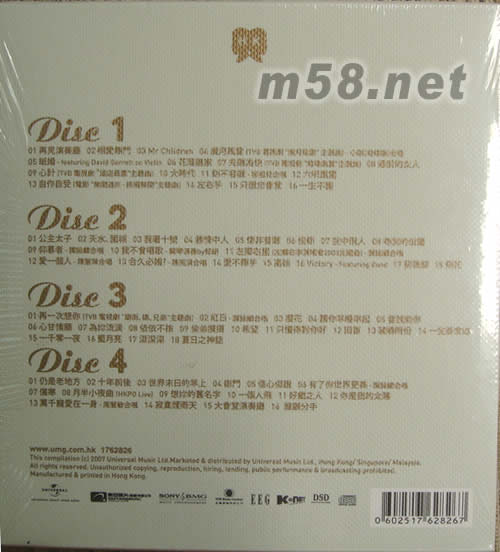DISC 1 1. 再見演奏廳 2. 嘆息門 3. Mr. Children 4. 歲月風云 –小剛合唱 5. 紙婚 6. 花落誰家 7. 先賭為快 8. 婚前的女人 9. 心計 10. 大時代 11. 刻不容緩 – 容祖兒合唱 12. 六呎風云 13. 自作自受 14. 左右手 15. 只想您會意 16. 一生不變 DISC 2 1. 公主太子 2. 天水、圍城 3. 我著十號 4. 勝情中人 5. 情非首爾 6. 佳節 7. 空中飛人 8. 吻別的位置 9. 仰慕者 10. 我不會唱歌 – 郎朗鋼琴演奏 11. 左鄰右里 – 譚詠麟合唱 12. 愛一個人 – 陳慧琳合唱 13. 合久必婚? – 陳苑淇合唱 14. 愛不釋手 15. 高妹 16. Victory – Featuring Bond 17. 前后腳 18. 飛花 DISC 3 1. 再一次想你 2. 紅日 – 譚詠麟合唱 3. 櫻花 4. 請你早睡早起 5. 當找到你 6. 心甘情愿 7. 為妳流淚 8. 依依不捨 9. 偷偷摸摸 10. 希望 11. 只懂對你好 12. 回首 13. 破曉時份 14. 一生掛念妳 15. 一千零一夜 16. 藍月亮 17. 深深深 18. 夏日之神話 DISC 4 1. 仍是老地方 2. 十年前后 3. 世界未日的早上 4. 口彭門 5. 信心保證 6. 有了你世界更美 7. 傷寒 8. 月半小夜曲 [HKPO LIVE] 9. 想你的舊名字 10. 一個人飛 11. 好戲之人 12. 你是我的太陽 13. 萬千寵愛在一身 – 周慧敏合唱 14. 寂寞煙雨天 15. 大會堂演奏廳 16. 誰愿分手