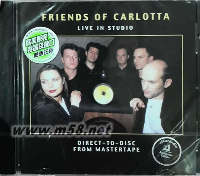 FRIENDS OF CARLOTTA絕世歌聲(m58.net) Live in Studio是一張非常與眾不同的人聲多重唱珍藏作品。1999年原版推出時(shí),全球只發(fā)行2000張,而當(dāng)時(shí)有幸可擁有及欣賞到這張發(fā)燒專(zhuān)輯的人屈指可數(shù),導(dǎo)致很多向往此張專(zhuān)輯的愛(ài)樂(lè)者不斷四出搜尋這張珍貴專(zhuān)輯。今年德國(guó)著名發(fā)燒音響品牌Clearaudio特別為這對(duì)Friends of Carlotta組合簽訂了全球性合約為他們發(fā)表這張令發(fā)燒樂(lè)迷引頸期待之完美作品。Clearaudio更引用了全新制碟模式原版直刻技術(shù)(DIRECT-TO-DISC From Master Tape)直接把原始母帶的音源直接印錄在CD當(dāng)中,將原有的音色訊號(hào)一點(diǎn)一滴完全穩(wěn)定鎖進(jìn)CD里。此專(zhuān)輯過(guò)去數(shù)年間在世界各地不同的高科技音響展覽會(huì)上均被用作各種器材的示范軟件,此碟不但錄音出眾,加上眾演唱或演奏家的超凡演繹,再一次確定了一張真正成功的發(fā)燒錄音軟件,必須具備高科技及高水準(zhǔn)演繹下不可劃缺的元素。然而今天在少數(shù)杰出的制作人當(dāng)中,有能力可以平衡高科技與完美藝術(shù)之間可共存之處,而今天電腦輔助音樂(lè)制成品之最終問(wèn)題是歌曲與歌曲之間前半拍的斷層現(xiàn)像,而原版直刻技術(shù)DIRECT-TO-DISC使訊號(hào)遺失的問(wèn)題亦可迎刃而解。 Friends of Carlotta是六人為一體靚聲組合,他們不單是合作無(wú)間的絕佳配搭,也是各自擁有個(gè)人風(fēng)格之老拍檔;雖然爵士(Jazz)和藍(lán)調(diào)(Blues)是他們演繹最多和閱歷至深之音樂(lè)種類(lèi),但當(dāng)他們遇到他們喜愛(ài)的作品時(shí),他們亦會(huì)盡情一試,因此這張集合八首非常流行歌曲的小品專(zhuān)輯《Live in Studio》亦隨之應(yīng)運(yùn)而生。因?yàn)檫@六位老拍檔合作已久的關(guān)系,直覺(jué)的大家亦明白瞭解到各自有自我的長(zhǎng)處,但更清楚到亦需要互相彌補(bǔ)彼此不足之處,包括聲調(diào)與樂(lè)器之間的互相運(yùn)用,令彼此配合無(wú)間,所以他們?cè)诒緦?zhuān)輯中表現(xiàn)得很和諧及協(xié)調(diào),不同的人聲與樂(lè)器之間的層次空間感,錄音寬闊、人聲質(zhì)感濃烈;這種曲風(fēng)與一些老牌歌手重唱經(jīng)典作品又是另一回事,無(wú)論是腔調(diào)、情感、語(yǔ)音和各音節(jié)之間的表現(xiàn)均被他人翻唱來(lái)得更加有張力和更具感染力。