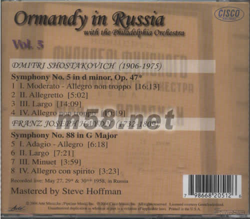 DMITRI SHOSTAKOVICH(1906-1975) SYMPHONY NO.5 IN D MINOR,OP.47 1.I.MODERATO-ALLEGRO NON TROPPO 2.II.ALLEGRETTO 3.III.LARGO 4.IV.ALLEGRO NON TROPPO FRANZ JOSEPH HAYDN(1732-1809) SYMPHONY NO.88 IN G MAJOR 5.I.ADAGIO-ALLEGRO 6.II.LARGO 7.III.MINUET 8.IV.ALLEGRO CON SPIRITO