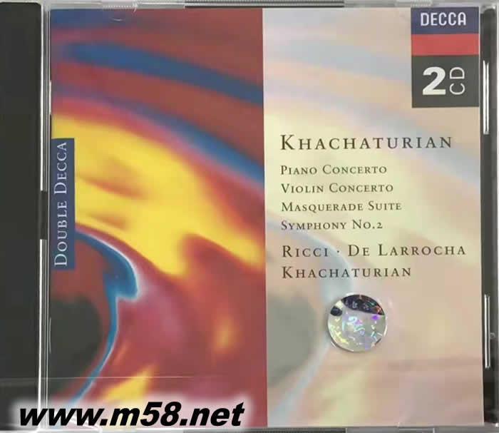 恰恰圖良 - 哈恰圖良:管弦樂(lè)曲集 Khachaturian - Khachaturian:Orchestral Msic(m58.net) 這張專輯中收錄了大師哈恰圖良的四首管弦樂(lè)名曲,分別是《化裝舞會(huì)組曲》、《鋼琴協(xié)奏曲》、《小提琴協(xié)奏曲》和《第二交響曲》。小提琴名家魯杰羅?里奇和鋼琴大師拉羅查、卡欽的激情演奏,為本唱片增色不少。其中《No.2交響曲》又是哈恰圖良本人親自指揮留下的珍貴錄音。Decca公司用簡(jiǎn)裝廉價(jià)雙CD出版,兩張唱片只售一張的價(jià)格,都是愛(ài)樂(lè)者值得收藏的理由。 阿拉姆?伊里奇?哈恰圖良(Aram Ilyich Khachaturian,1903-1978),亞美尼亞作曲家。19歲時(shí)成為莫斯科格涅辛學(xué)校的大提琴學(xué)生,后又參加作曲班,所作三重奏(1932)得到普羅科菲耶夫的重視,后者為他安排在巴黎演出。第一交響曲(1934)于1935年4月首演時(shí)受到好評(píng),而鋼琴協(xié)奏曲(1936)更為成功。他曾在國(guó)家機(jī)構(gòu)中擔(dān)任各種公職。第二交響曲和大提琴協(xié)奏曲于1948年受到官方的非難,于是他改而創(chuàng)作電影音樂(lè)。1950年開始任教于格涅學(xué)院和莫斯科音樂(lè)院,并開始指揮自己的作品,在意大利、英國(guó)、拉丁美洲等地旅行演出。1956年芭蕾舞劇《斯巴達(dá)克斯》(Spartacus)問(wèn)世,被莫斯科的評(píng)論家們譽(yù)為一大杰作。 他的音樂(lè)絢麗多彩,繼承了圣彼得堡樂(lè)派的民族主義傳統(tǒng)。哈恰圖良的創(chuàng)作具有亞美尼亞民族音樂(lè)的特點(diǎn),其獨(dú)特的旋律音調(diào),強(qiáng)烈的和聲語(yǔ)言,復(fù)雜的節(jié)奏形態(tài)等,都與亞美尼亞的民間音樂(lè)有著血肉聯(lián)系。另外,因受法國(guó)印象主義的影響,他的作品還以熱情、樂(lè)觀、富于色彩、旋律豐富和高度的技巧性見(jiàn)長(zhǎng)。他的鋼琴協(xié)奏曲和小提琴協(xié)奏曲是世界各國(guó)經(jīng)常演奏的曲目。他的代表作有管弦樂(lè)曲《馬刀舞曲》,表現(xiàn)蘇聯(lián)衛(wèi)國(guó)戰(zhàn)爭(zhēng)的《No.2交響曲》(又名《排鐘交響曲》)、舞劇《加雅涅》、《斯巴達(dá)克斯》以及電影《斯大林格勒保衛(wèi)戰(zhàn)》的配樂(lè)等。他還是前亞美尼亞蘇維埃社會(huì)主義共和國(guó)國(guó)歌的作者。 魯杰羅?里奇(Ruggiero Ricci)是美國(guó)土生土長(zhǎng)的、具有世界聲望的小提琴家。1918年7月24日生于舊金山,8歲起隨帕辛格學(xué)琴,10歲舉行首次公演,第二年在紐約卡耐基音樂(lè)廳演奏門德?tīng)査蓞f(xié)奏曲,有“天生的演奏家”之譽(yù),但尚不及同時(shí)崛起的同門師兄梅紐因那么超群絕倫。1932年里奇前往歐洲各國(guó)巡回演出,曾接受庫(kù)倫坎普夫的指點(diǎn)。1933-1937年再度師從帕辛格潛心鉆研,所獲多為凌厲威猛的手上功夫,依薩伊席卷一切的詩(shī)意風(fēng)格似乎沒(méi)學(xué)到多少。這也許是由于個(gè)人的愛(ài)好、氣質(zhì)和客觀條件所致。里奇在全盛時(shí)期的演奏威風(fēng)凜凜,銳氣逼人,左手揉指緊實(shí),動(dòng)作快捷利落,右手運(yùn)弓謹(jǐn)嚴(yán),爆發(fā)力強(qiáng)。他一般喜愛(ài)采用偏快的速度處理樂(lè)曲,以顯示其無(wú)所不能的技藝,運(yùn)用得當(dāng),很有說(shuō)服力。 阿利西亞?德?拉羅查(Alicia de Larrocha,1923-),西班牙女鋼琴家,5歲起即上臺(tái)演奏,11歲在馬德里公演,被譽(yù)為鋼琴神童。1947年起到世界各地巡回演出,1955年在美國(guó)首演,大獲成功。她雖身材不高,手掌較小,但在技術(shù)上是位巨匠,節(jié)奏感強(qiáng),鮮明而又真摯,純樸自然,對(duì)音樂(lè)的處理細(xì)膩,獨(dú)具匠心。她是西班牙作曲家格拉納多斯、阿爾班尼斯、法雅作品的權(quán)威詮釋者,演奏莫扎特和肖邦的作品也很出色。