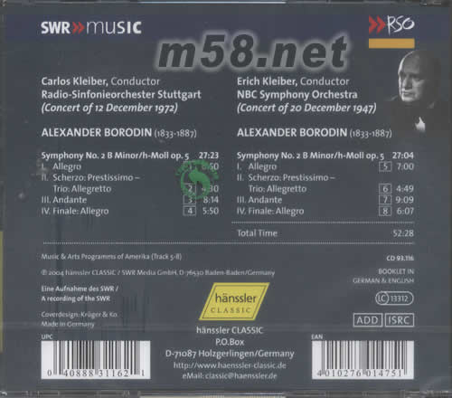 價格為估,以實到貨為準! 克萊伯父子錄音 巴羅迪第二號交響曲(m58.net) 罕有克萊伯父子錄音 收錄兩大天才橫溢的父子指揮家埃里克,克萊伯及卡洛斯,克萊伯指揮巴羅迪的第二號交響曲錄音,令樂迷再次面懷這兩位奇父子的指揮風采