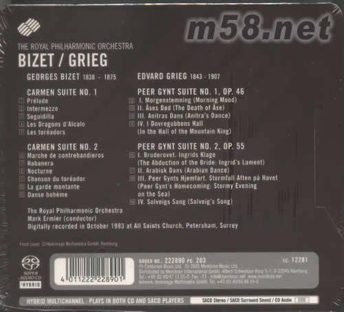 BIZET GRIG比才與格里格SACD專輯背面圖片