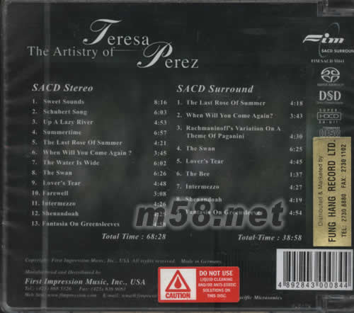 the artistry of teresa perez 超時空大提琴SACD專輯背面圖片