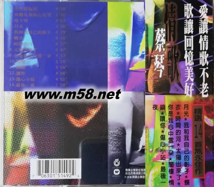 情歌蔡琴精選(m58.net) 疼惜女人的真情 寶貝蔡琴的情歌 情歌蔡琴精選 獨一無二蔡琴式情歌 忽然想起你 ·我聽見我的心在哭·地下情 愛讓情歌不老 歌讓回憶美好 精選14首舊永佳作 月光 我和我自己的影子 蝶衣 時間的河 太陽出來了 你是我心中云一朵 閣樓 情鎖 讀你 傷心小站 最后一夜