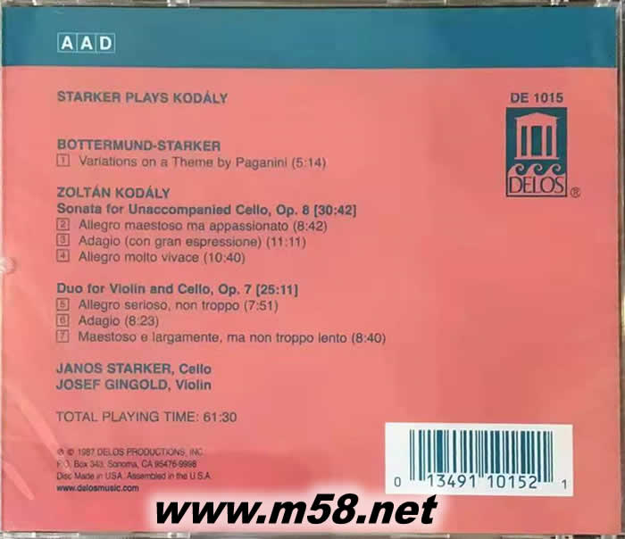 大提琴皇帝STARKER PLAYS KODALY專輯背面圖片