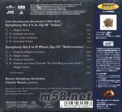 Symphony No.5 in D Minoe,Op.107 "Reformation" 27:13 5 I. Andante;Allegro con fuoco 10:40 6 II. Allegro vivace 4:08 7 III. Andante(attacca:) 3:24 8 IV. Andante con moto(Chorale:"Ein feste Burg ist unser Gott");Allegro vivace 8:51