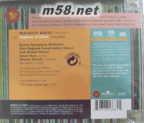 RAVEL DAPHNIS ET CHLOE拉威爾:芭蕾音樂達鞭尼與克羅埃環繞錄音(Living Stereo SACD特惠)專輯背面圖片