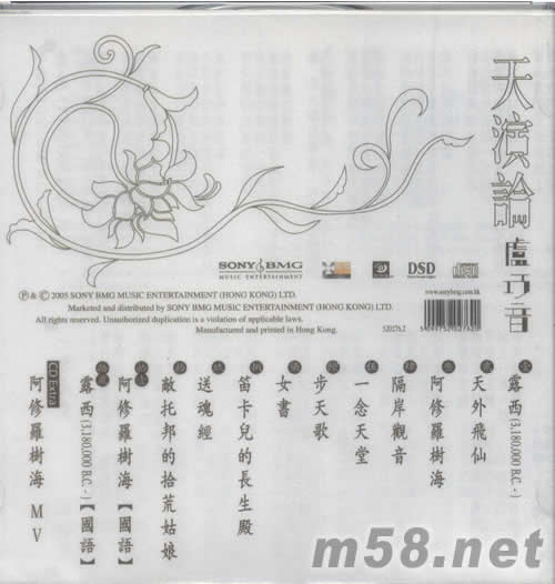 價(jià)格為估,以實(shí)到貨為準(zhǔn)! 天演論(m58.net) 全碟收錄12首廣東+國(guó)語(yǔ)作品 誠(chéng)意推介盧巧音創(chuàng)作歌曲 包括:[阿修羅樹海] [露西 (3,180,000 B.C.-)] CD EXTRA:阿修羅樹海 MV