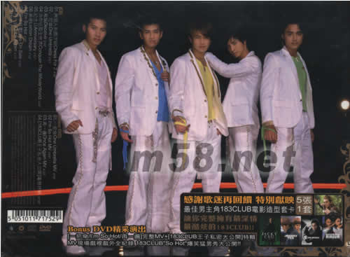 首張同名專輯(亞洲慶功典藏版)(m58.net) 183CLUB首張同名專輯 亞洲慶功典藏版 深情主打::一把傘/再一遍/紀念日/HERO 勁舞主打::I'M SO HOT/兩個人的西洋棋 全亞洲限量CD+DVD+183CLUB電影造型套卡 精裝再贈送(183CLUB拍照會PASS) 你唯一與最愛王子拍親密合照的機會!!活動詳情請見盒內PASS說明