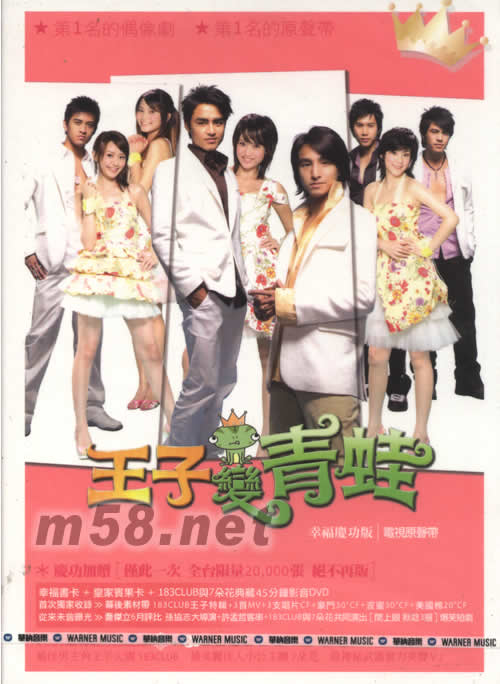 價格為估,以實到貨為準! 王子變青蛙電視原聲帶 幸福慶功版(CD+DVD)(m58.net) ★第一名的偶像劇 ★第一名的原聲帶 王子變青蛙電視原聲帶 幸福慶功版 好禮加贈上市!! 僅此一次 全臺限量20,000張 絕不再版 一次擁有 超值慶功獻禮: 3張幸福書卡 +皇家賓果卡 +183CLUB與7朵花典藏35分鐘影音DVD