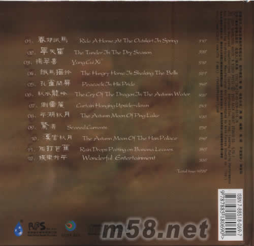 01 春郊試馬 02 旱天雷 03 楊翠喜 04 餓馬搖鈴 05 孔雀開屏 06 秋水龍吟 07 倒垂簾 08 平湖秋月 09 驚濤 10 漢宮秋月 11 雨打芭蕉 12 娛樂升平