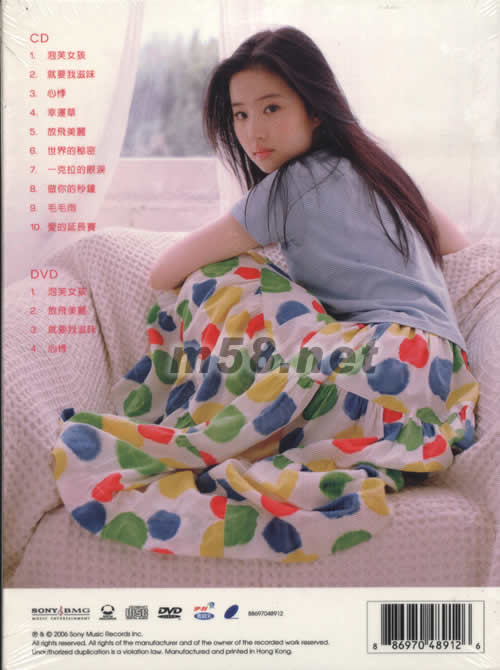 首張個(gè)人專輯 升級(jí)珍藏版(m58.net) 人氣偶像小龍女 劉亦菲首張個(gè)人專輯 CD+DVD升級(jí)珍藏版 DVD 特別收錄四首YIFEI動(dòng)人演繹 MUSIC VIDEO 包括:放飛美麗,泡芙女孩,就有我滋味,心悸 不能錯(cuò)過(guò)的升級(jí)版 專屬歌迷搶先收藏 在亞洲竄紅的新一代「小龍女」劉亦菲,在《神雕俠侶》中飾演小龍女一角深入民心,更憑著一口流利日文順勢(shì)進(jìn)軍日本藝能界,最近還移師香港另辟市場(chǎng)!她稍後將赴美國(guó)修讀藝術(shù)課程,暫別娛樂(lè)圈。唱片公司特別制作CD+DVD限量版《劉亦菲 首張國(guó)語(yǔ)專輯》,收錄了四首新歌的精選MV。數(shù)量極之有限,只限一批,絕不加印! 劉亦菲是美國(guó)籍華人,出生于中國(guó)武漢,畢業(yè)于北京電影學(xué)院。劉亦菲2004年與陳柏霖合演清新電影《五月之戀》,之後主攻《仙劍奇?zhèn)b傳》和《天龍八部》等古裝武俠片演出,其中與黃曉明最近合演《神雕俠侶》中的楊過(guò)與小龍女,自在中港臺(tái)播出後更一炮而紅。她于2005年8月正式簽約日本索尼音樂(lè)公司,一直接受聲樂(lè)和舞蹈訓(xùn)練。這張國(guó)語(yǔ)唱片將走英倫、流行及田園等不同風(fēng)格,唱片專輯封面是由日本著名攝影師在神秘的小島上拍攝。 主打歌「放飛美麗」抒發(fā)健康和美麗的心情,健康是最美麗的,和聽(tīng)眾分享她的廣闊視野。除了這首流行的廣告曲外,專輯也收錄了新歌「心悸」。