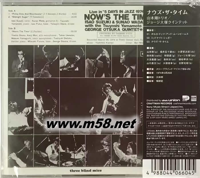NOW'S THE TIME 爵士多重奏(鋼琴、貝斯、鼓) 三盲鼠日本版專輯背面圖片