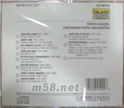 Pomp & Pizazz 華麗威猛的進(jìn)行曲(m58.net) 節(jié)奏鮮明有力、音樂(lè)性豐富、氣勢(shì)雄偉的管弦樂(lè) 進(jìn)行曲最初是為促使一群人,尤其是士兵們行進(jìn)時(shí)能迅速而整齊所產(chǎn)生的,進(jìn)行曲的特色就在它鮮明有力的節(jié)奏與豐富的音樂(lè)性。羅馬時(shí)代已有進(jìn)行曲,而許多知名的音樂(lè)家如海頓、貝多芬也寫(xiě)過(guò)這種音樂(lè);后來(lái)進(jìn)行曲逐漸受到重視,并被改編為管弦樂(lè)而在音樂(lè)會(huì)中演奏。本片收錄11首最著名的進(jìn)行曲,有約翰‧威廉斯的「奧林匹克鼓號(hào)曲」、進(jìn)行曲之王蘇沙的「星條旗萬(wàn)歲」,這首樂(lè)曲現(xiàn)今已是美國(guó)的音樂(lè)象徵,此外還有蘇克的「迎向新生」、柴可夫斯基的「亞歷山大三世之加冕進(jìn)行曲」、艾爾嘉的「威風(fēng)凜凜進(jìn)行曲」等,首首動(dòng)聽(tīng),絕無(wú)冷場(chǎng)。