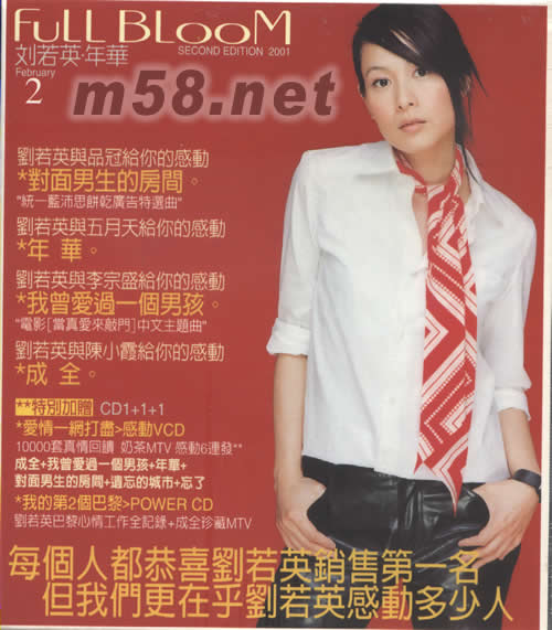 價格為估,以實到貨為準! 年華FULL BLOOM(第二版)(m58.net) 特別加贈CD1+1+1 愛情一網打盡>感動VCD 10000套真情回饗 奶茶MTV感動6連發 我的第2個巴黎>POWER CD 劉若英巴黎心情工作全紀錄+成全珍藏MTV 10首音樂中的偶然與巧合 成全了你我勇敢的美麗人生 當我們流浪在愛情里的時候 就會忍不住想起劉若英 當我們談論愛情的時候 就會想聽劉若英 李宗盛 袁惟仁 五月天 品冠 馬玉芬 陳建寧 于光彥 陳 升 陳小霞 許常德 聯手成全 劉若英的年華