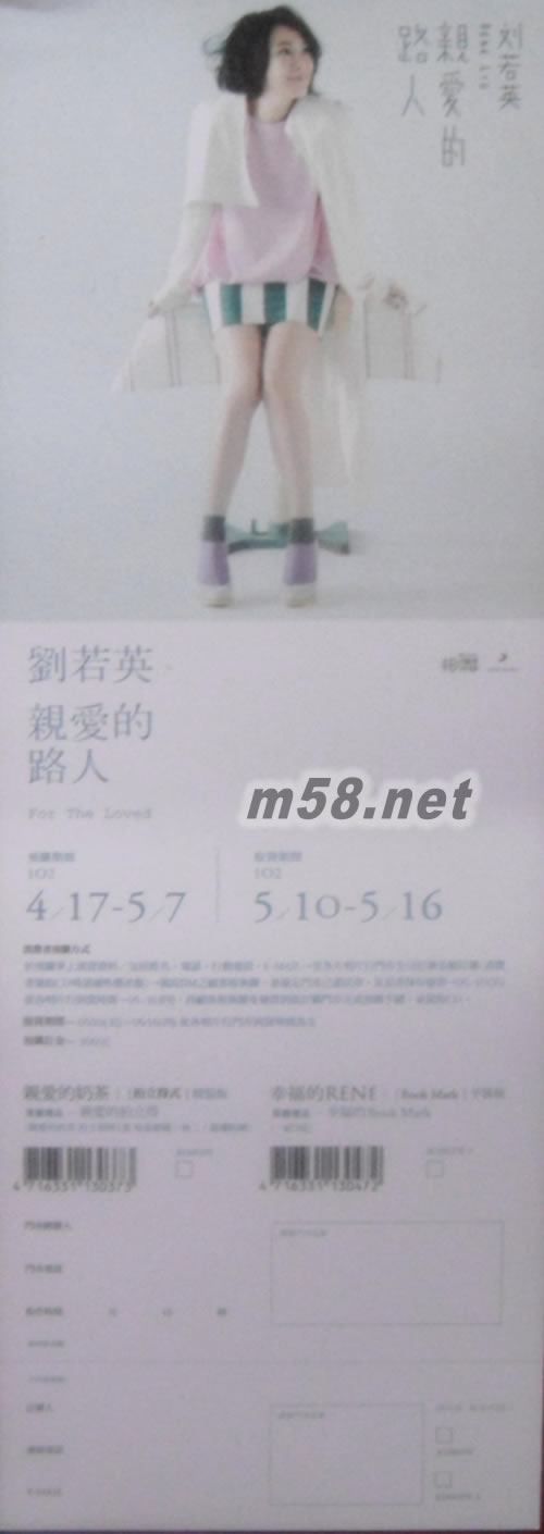 親愛的路人(親愛的奶茶)精裝版(臺灣預購)(m58.net) 預購單尺寸:28*10CM(出版日前預購的才有) 親愛的奶茶[拍立得式]精裝版 預購限量加贈:[親愛的拍立得]親愛的奶茶拍立得式照片1張 (每張都獨一無二)隨機附贈 [親愛的路人] VS. [幸福不是情歌] 奶茶劉若英這張暌違三年的生命情歌專輯【親愛的路人】,累積了她對愛情的體驗和領悟。囊括「四大才女」陳綺貞、陳小霞、許哲珮、徐佳瑩的女性真言創作,再由「四大男製作人」鐘成虎、陳建良、張亞東、五月天瑪莎操刀詮釋,曲風涵蓋抒情、搖滾、民謠、電音等。雙主打呈現奶茶雙子座的豐富性格,也宣言了專輯的豐富。