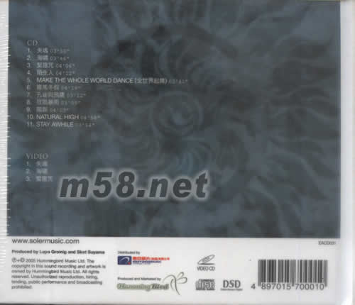 CD 01. 失魂 02. 海嘯 03. 緊箍咒 04. 陌生人 05. MAKE THE WHOLE WORLD DANCE(全世界起舞) 06. 羅馬冬假 07. 孔雀與飛鷹 08. 狂風(fēng)暴雨 09. 暗器 10. NATURAL HIGH 11. STAY AWHILE VIDEO 01. 失魂 02. 海嘯 03. 緊箍咒