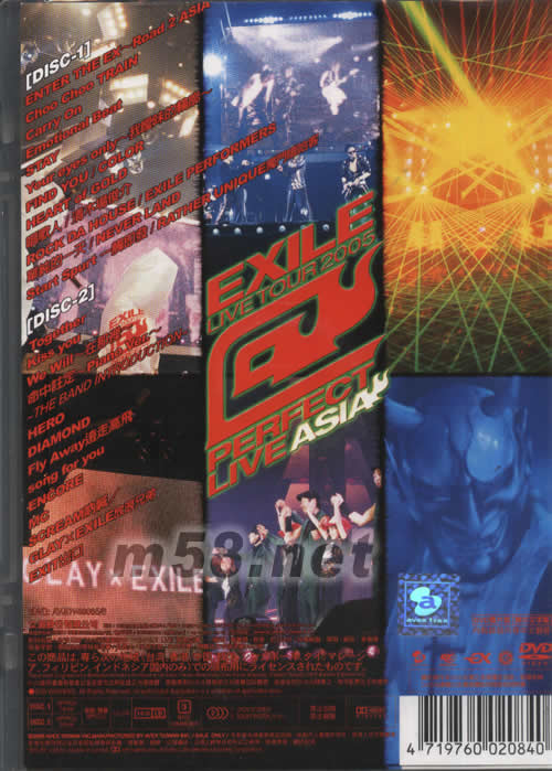 DISC 1 1. ENTER THE EX~Road 2 ASIA 2. Choo Choo TRAIN 3. Carry On 4. Emotional Beat 5. STAY 6. Your eyes only~我曖昧的輪廓~ 7. FIND YOU / COLOR 8. HEART of GOLD 9. 唱歌人 / 清木場(chǎng)俊介 10. ROCK DA HOUSE / EXILE PERFORMERS 11. 單純的一天 / NEVER LAND 12. Start Spurt 一觸即發(fā) /RATHER UNIQUE獨(dú)門嘻哈客 DISC 2 1. Together 2. Kiss you 3. We Will~在那里~ 4. 命中注定~Piano Ver.~ 5. HERO 6. DIAMOND 7. Fly Away遠(yuǎn)走高飛 8. song for you 9. ENCORE—MC 10. ENCORE—SCREAM吶喊/GLAY×EXILE放浪兄弟 11. ENCORE—EXIT出口