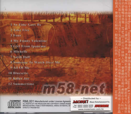 1、As Time Goes By 2、Take Five 3、Four 4、My Funny Valentine 5、Girl From Ipanema 6、Michelle 7、Satin Doll 8、Someone To Watch Over Me 9、All Of Me 10、Bluesette 11、Killer Joe 12、Summertime