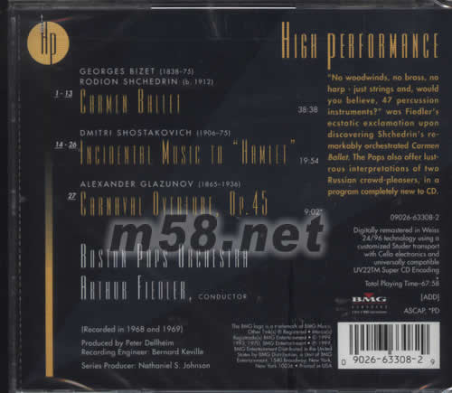 GEORGES BIZET (1838-75) RODION SHCHEDRIN (B,1912) 1-13.CARMEN BALLET DMITRI SHOSTAKOVICH(1906-75) 14-26.INCIOENTAL MUSIC TO HAMLET ALEXANDER GLAZUNOV(1865-1936) 27.CARNAVAL OVERTURE,OP.45