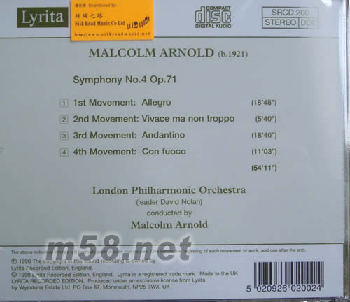 阿諾德第4交響曲(絲綢之路代理)專(zhuān)輯背面圖片