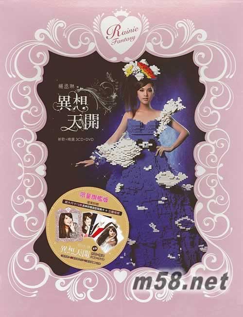 異想天開-新歌+精選~限量超大盒裝旗艦版3CD+DVD+相框+寫真卡(m58.net) 在Rainie的音樂里 所有的奇幻異想 浪漫夢境都能成真... 3首新歌+35首冠軍主打精選+15首冠軍主打MV 限量超大盒裝旗艦版 3CD+DVD+立體相框+12張超大精美寫真卡 旗艦版以超大盒包裝,內附立體相框和12張超大精美寫真卡,限量發售。