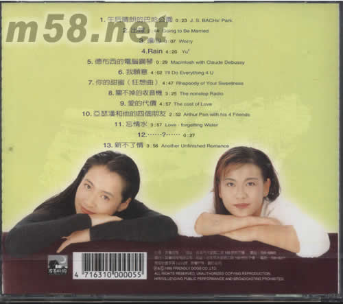 01 午后晴朗的巴哈公園 02 出嫁 03 擔心 04 Rain 05 德布的電腦鋼琴 06 我愿意 07 你的甜蜜(狂想曲) 08 關不掉的收音機 09 愛的代價 10 亞瑟潘和他的四個朋友 11 忘情水 12 ……?…… 13 新不了情