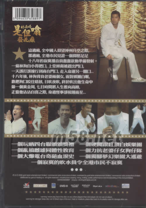 是但噏發(fā)花癲DVD(m58.net) 三字頭大代表作 男女子組大包圍 足本林狗對人歡笑臺前120分鐘是但噏 秘制林狗背人垂淚50分鐘臺后回憶錄 DVD-9 十五段真人真事笑到噴飯粒粒皆辛苦 超長氣勁歌金曲唱到斷氣字字皆風(fēng)流 承接上回,林狗成功發(fā)射登上人生第一個黃金周,豈料航道突然改變重回地球,感覺自己只不過是一條隨風(fēng)漂泊的名毛,過去一年萬人擁戴T-恤熱 賣的盛況,富貴于他如浮云.正當(dāng)處于事業(yè)另一個關(guān)口之際,林狗碰上絕世高人可愛教主,得以傳授無敵神功六字口決:超低能勁搞笑....