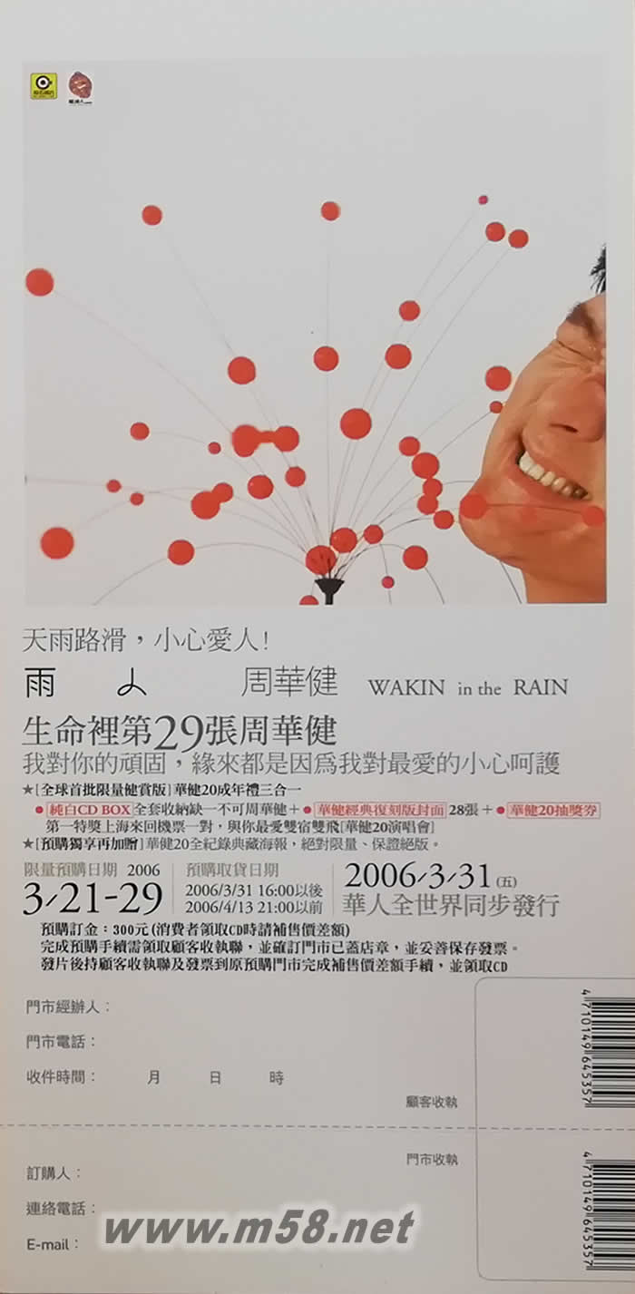 雨人臺版預購單(m58.net) 預購單尺寸:21*10CM 厚紙板夾寄