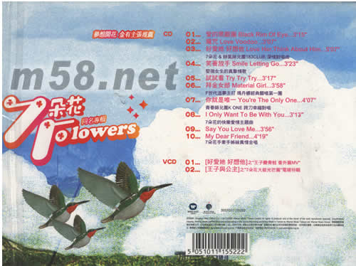 CD 01. 愛的黑眼圈 Black Rim Of Eye 02. 魔咒 Love Voodoo 03. 好愛她 好想他 Love Her,Think About Him 7朵花&帥氣師兄團183CLUB深情對唱曲 04. 笑著放手 Smile Letting Go 堅強女生的真摯情歌 05. 試試看 Try Try Try 06. 拜金女郎 Material Girl F世代追夢主打 瑪丹娜經典翻唱第一團 07. 你就是唯一 You're The Only One 青春師兄團K ONE 跨刀幸福對唱 08. I Only Want To Be With You 7朵花的快樂愛情主題曲 09. Say You Love Me 10. My Dear Friend 7朵花手牽手姊妹真情合唱 VCD 01. [好愛她 好想他]之"王子變青蛙 番外篇MV" 02. [王子與公主]之"7朵花大綻光芒篇"電視特輯