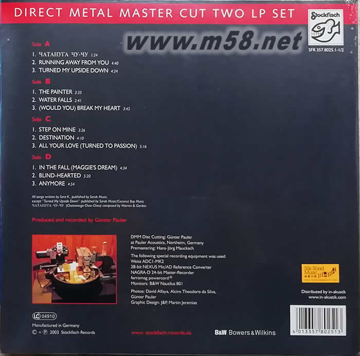 Water Falls 瀑布 180g 33RPM LP 老虎魚 雙黑膠(m58.net) 180g 33RPM LP 發(fā)燒碟天后首張完美黑膠,莎拉.K以極溫醇磁性的聲音,結(jié)合多種音樂元素:爵士、民謠、藍(lán)調(diào)等,打動你的心靈,180克、33 1/3轉(zhuǎn),罕有的一對一直刻黑膠,黑膠收藏的珍品!