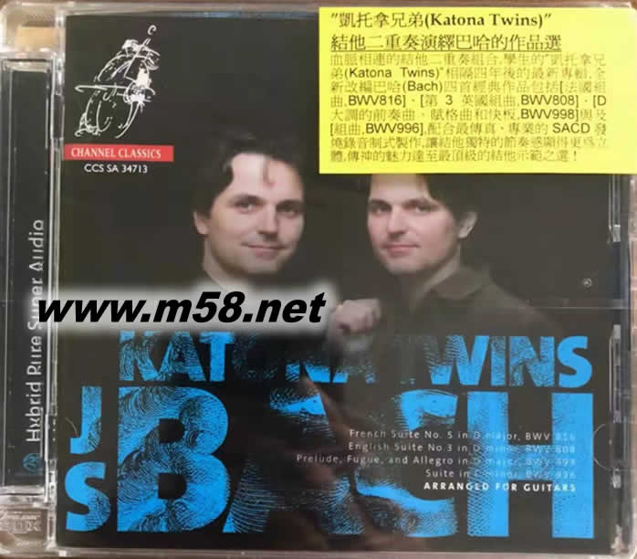 結他二重奏演繹巴哈的作品 BACH SACD(m58.net) 全新改編巴赫四首經典作品,法國組曲、英國組曲選/前奏曲、賦格、快板等,孿生兄弟的組合天衣無縫,SACD讓吉他的獨特節奏感更為傳神。吉它示范之選,德國壓制!